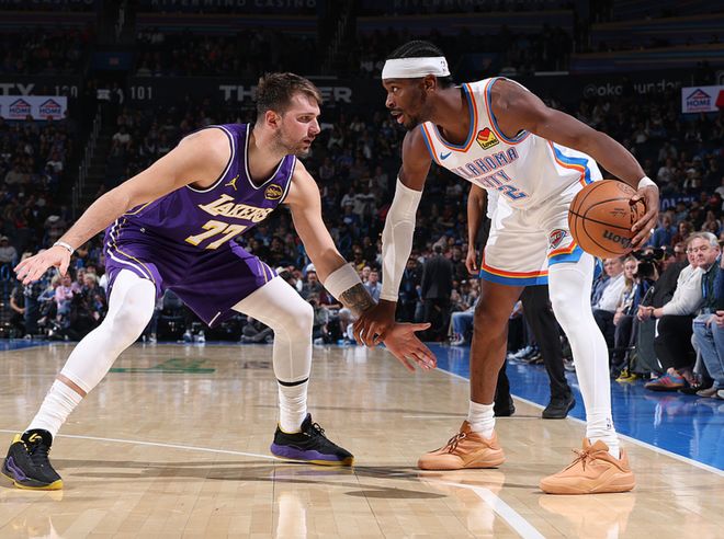 湖人客场对阵雷霆,雷霆是背靠背作战(昨日大胜勇士),体力不如湖人,雷霆方面杰伦、多尔特、威金斯缺阵,湖人方面詹姆斯、文森特缺阵,本以为湖人能和雷霆抗衡,没想到雷霆半场战罢已经领先32分,比赛就此花掉,最终雷霆大胜湖人29分。亚历山大18中10得到30分5板9助2断,东契奇20中7得到19分7板7助2断。